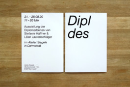 Vom 21. bis zum 28. August 2020 stellte ich zusammen mit Lilian Lautenschläger unsere Diplomarbeiten, die im Sommersemester 2020 am Fachbereich Gestaltung der Hochschule Darmstadt im Studiengang Kommunikationsdesign entstanden sind, in der Ausstellung »DiplDes« im Atelier Siegele in Darmstadt aus. Für die Ausstellung gestalteten wir ein Leitsystem und eine begleitende Broschüre. Neben meiner Arbeit »CoCB. – Community of Collecting Books. Entwicklung und Gestaltung eines neuen, digitalen Ausstellungskonzeptes für die Sammlung Buchkunst und Grafik des Museum Angewandte Kunst in Frankfurt am Main.« zeigte meine gute Freundin Lilian Lautenschläger ihre Arbeit »Elixier des Lebens – der alchemistische Prozess der Transmutation, der das Erlangen von Unsterblichkeit verspricht«.