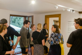 Im Rahmen eines Hochschulkurses haben wir zusammen mit Roger Rigorth Bezug auf die vom ihm kuratierte und imitierte Ausstellung »Hinter dem Horizont« genommen. »Hinter dem Horizont / Den Bogen spannen« ist der Titel des Symposiums, welches anlässlich des Festivals 100 Jahre Darmstädter Sezession auf dem Oberfeld, Darmstadt stattfand. Aus philosophischer Sicht ist der Horizont eine Grenzlinie und schafft somit Raum für Utopien, Sehnsüchte und Möglichkeiten. Diesen Raum haben Sezessionist Roger Rigorth, Urban Hüter und vier weitere internationalen Künstlerlnnen mit zeitgenössischen Skulpturen und Landart gefüllt. Unsere Ausstellung zeigt Arbeiten von Antonia Steitz und mir, welche innerhalb von drei Wochen, in denen das Symposium auf dem Oberfeld stattfand, entstanden sind. Im Zentrum steht die Auseinandersetzung mit den Werken von Roger Rigorth, Urban Hüter, Ryszard Litwiniuk, Strijdom van der Merve, Karin van der Molen und Urs Twellmann. Ergänzend zu den dokumentarischen Arbeiten der Studentinnen sind freie Werke entstanden, die sich an die Prozesse und Materialien der Künster anlehnen.