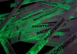 Ein besonderer Effekt waren die fluoreszierenden Elemente während des gesamten Prozesses. Als Cover fungiert das Ausstellungsplakat, auf dem bei Dunkelheit ein Sternenhimmel und ein Mond leuchtet.